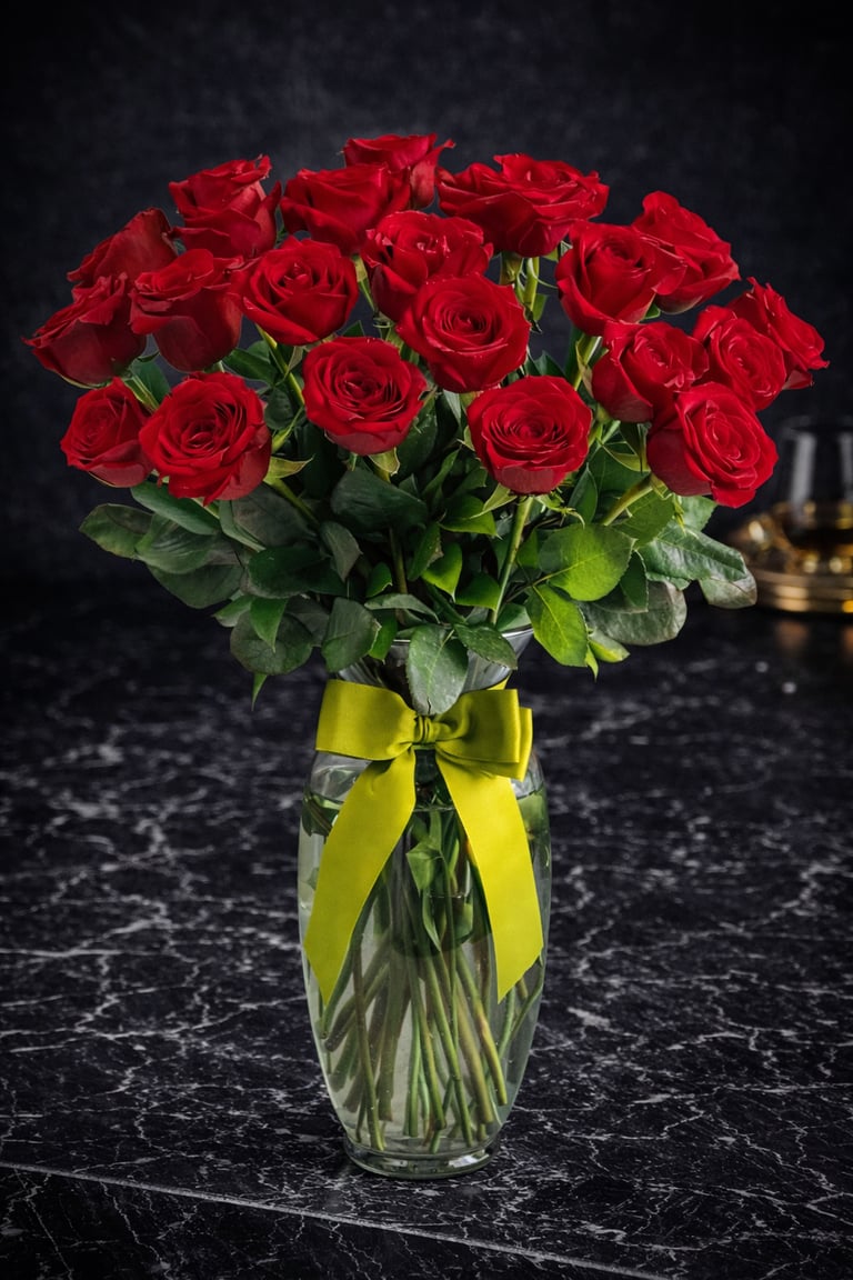 El precio varía dependiendo de la cantidad de rosas solicitadas — 12, 24, 48, 72, 96 o más — y del estilo de arreglo que elijas.