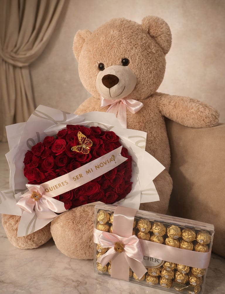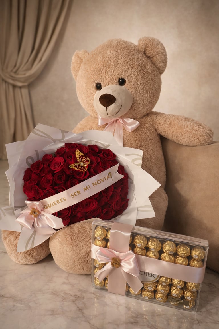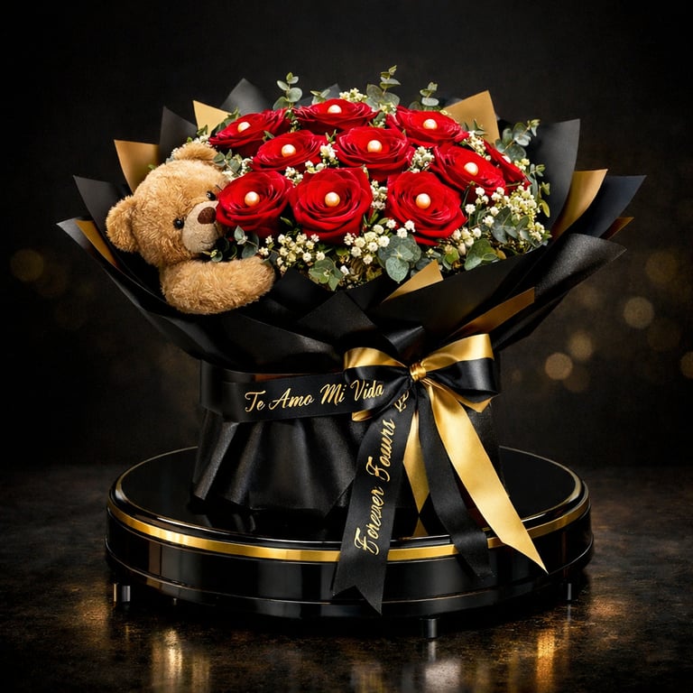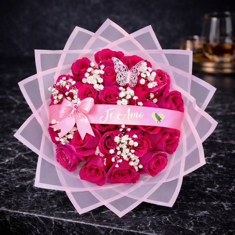 Cada ramo es elaborado cuidadosamente utilizando rosas premium y flores seleccionadas, acomodadas con precisión, creatividad y un estilo distintivo que combina elegancia moderna con un toque artesanal lleno de corazón.